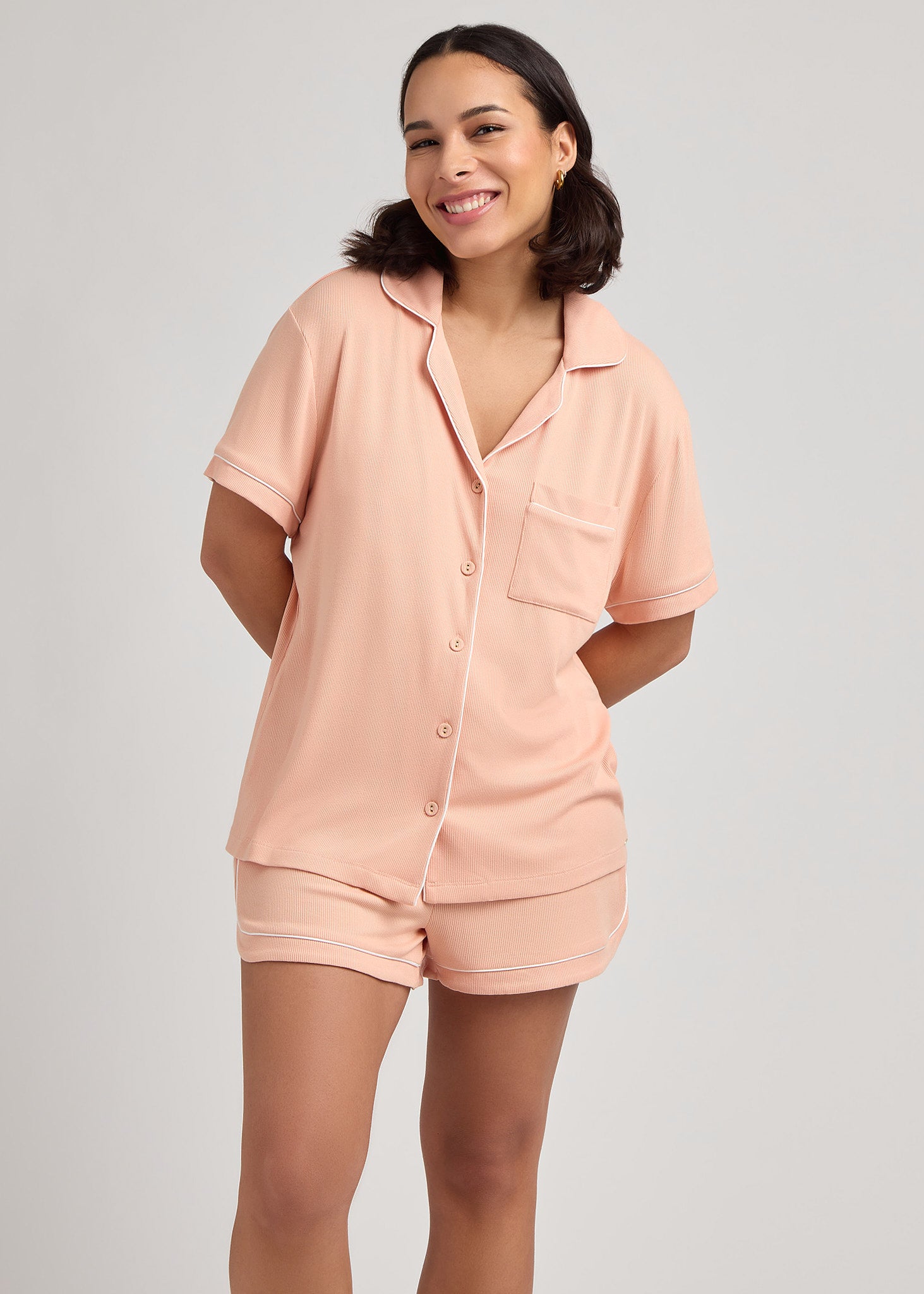 A slow Sunday morning calls for this soft, sweet and seriously sustainable shirt. Wear it with the matching pants for an adorable early a.m. or late-night ensemble.